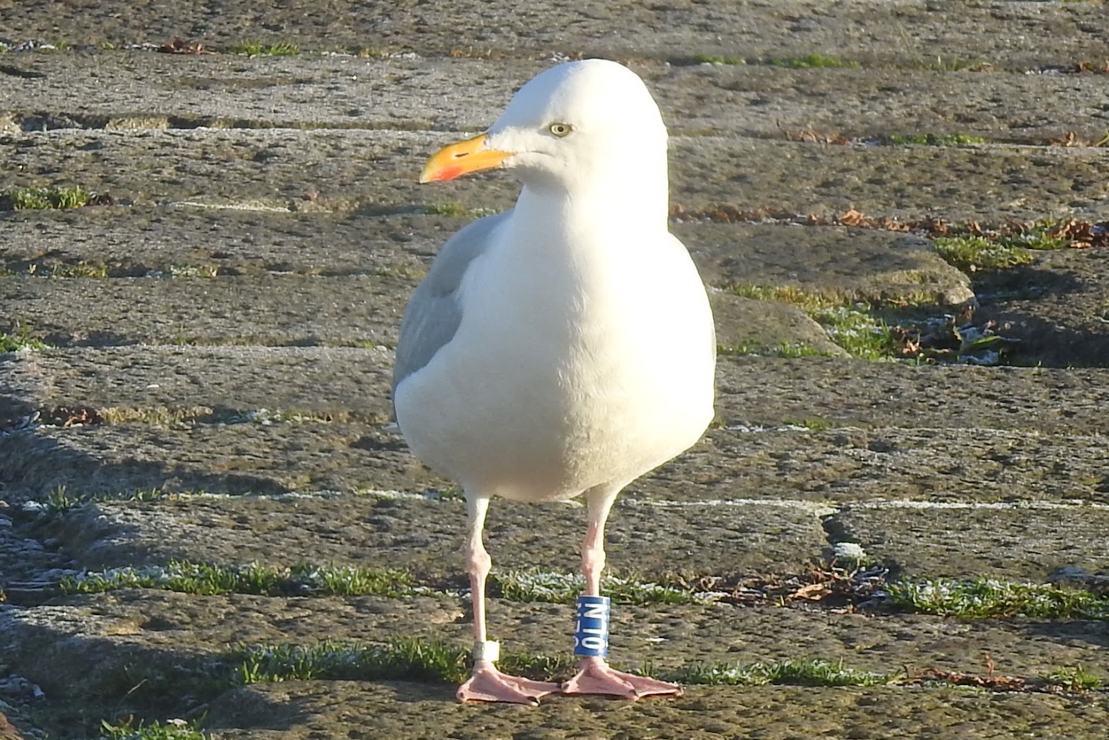 I had spotted a Green Ringed Black Headed Gull, while queuing at the traffic lights en route. I walked back and relocated it. Ringed as an adult in 2014. Todays was the 3rd record outside Norway. (The other two sightings were also mine).